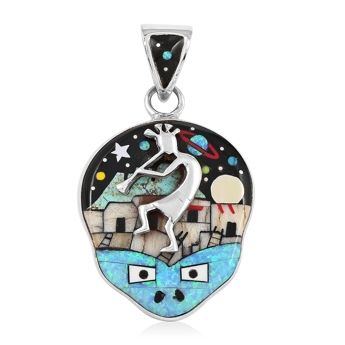Santa Fe Style Multi Gemstone Old Pueblo Night Sky Stars Saturn Pendant in Sterling Silver 20.00 ctw