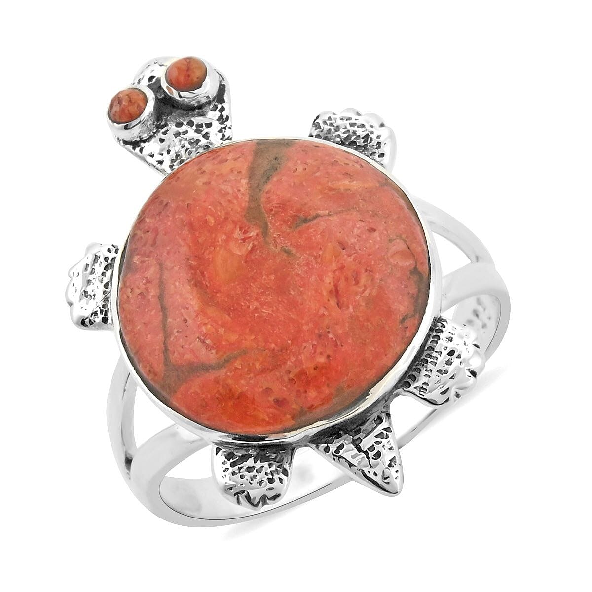 Santa Fe Style Plum Coral Turtle Ring in Sterling Silver (Size 8.0)
