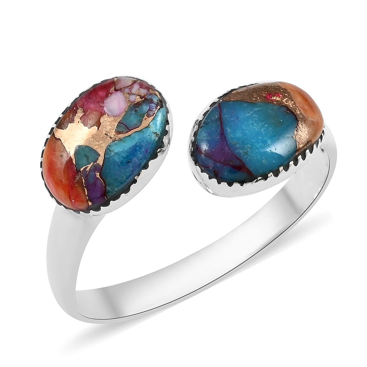 Santa Fe Style Rainbow Turquoise Ring in Sterling Silver (Size 6.0) 2.00 ctw