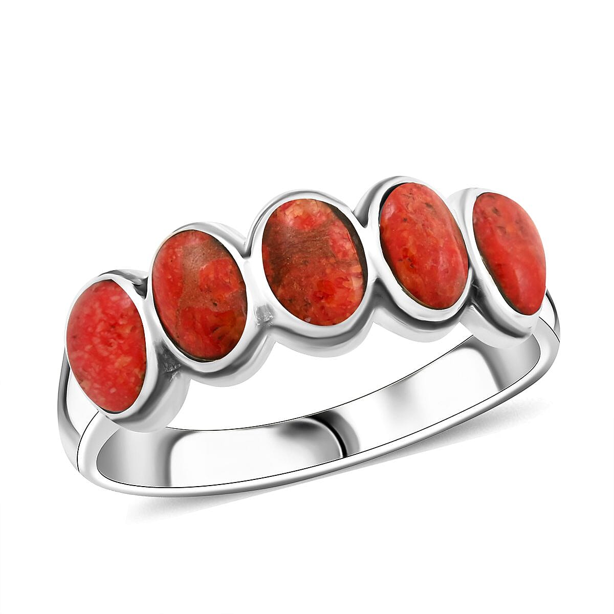 Santa Fe Style Red Coral Ring in Sterling Silver (Size 10.0)