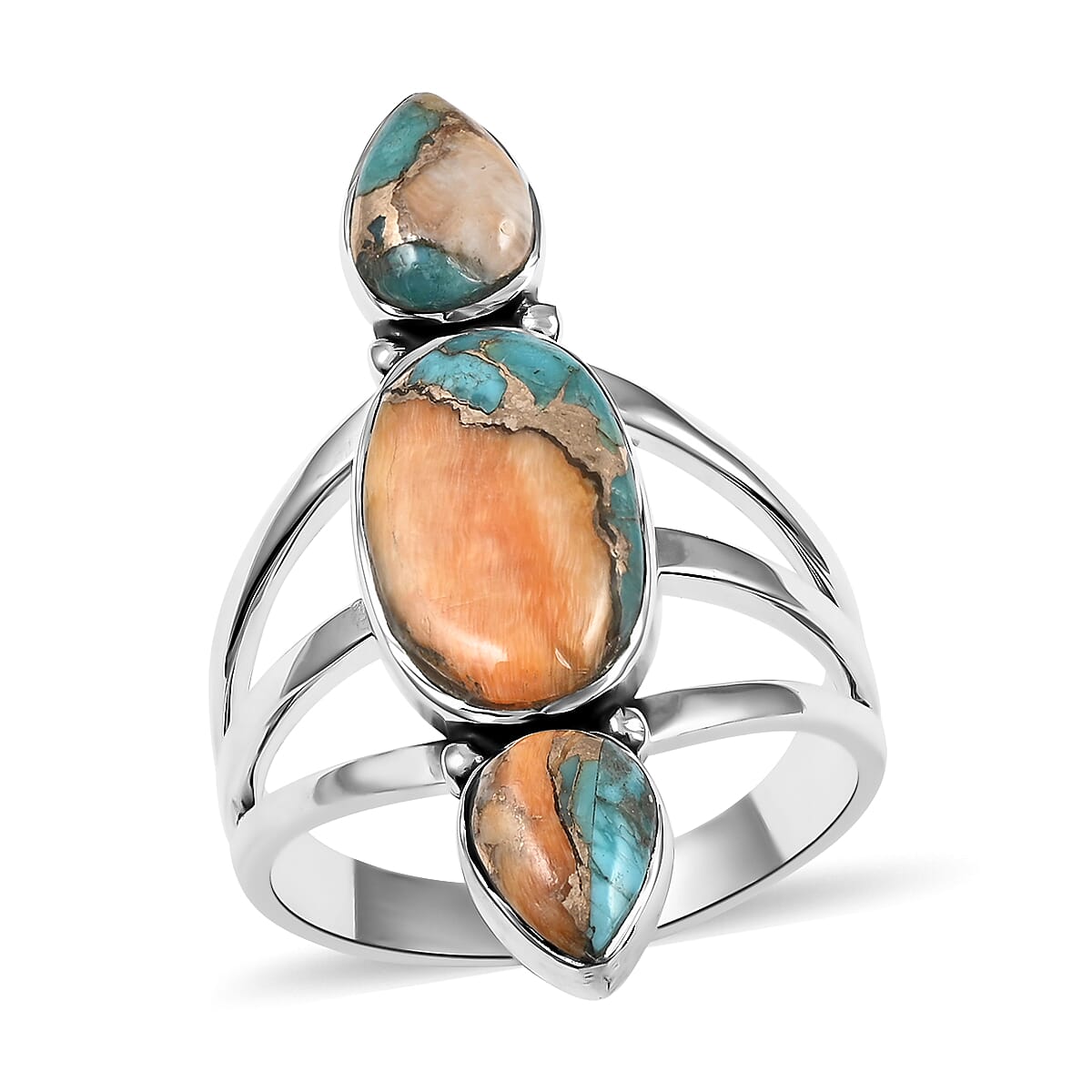 SANTA FE Style Spiny Turquoise 3 Stone Ring in Sterling Silver (Size 10.0) 0.65 ctw
