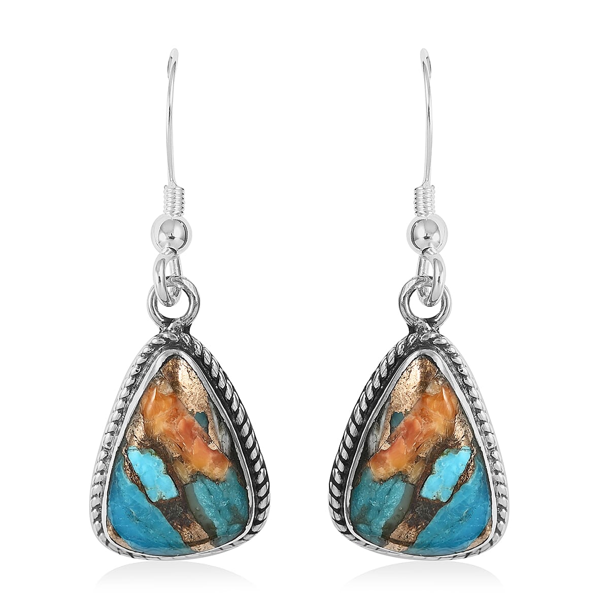 Santa Fe Style Spiny Turquoise Dangle Earrings in Sterling Silver 0.25 ctw