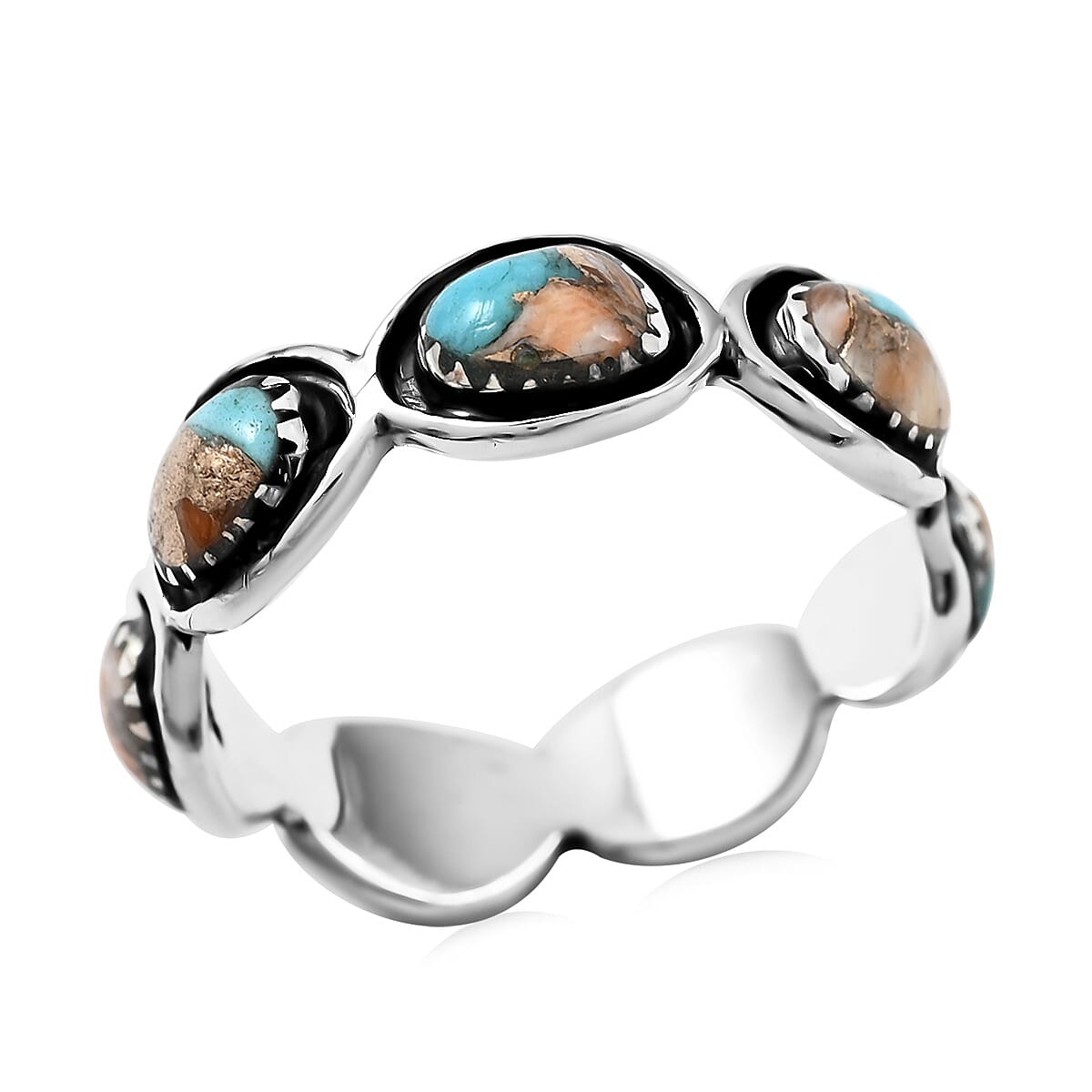 SANTA FE Style Spiny Turquoise Eternity Ring in Sterling Silver 0.05 ctw