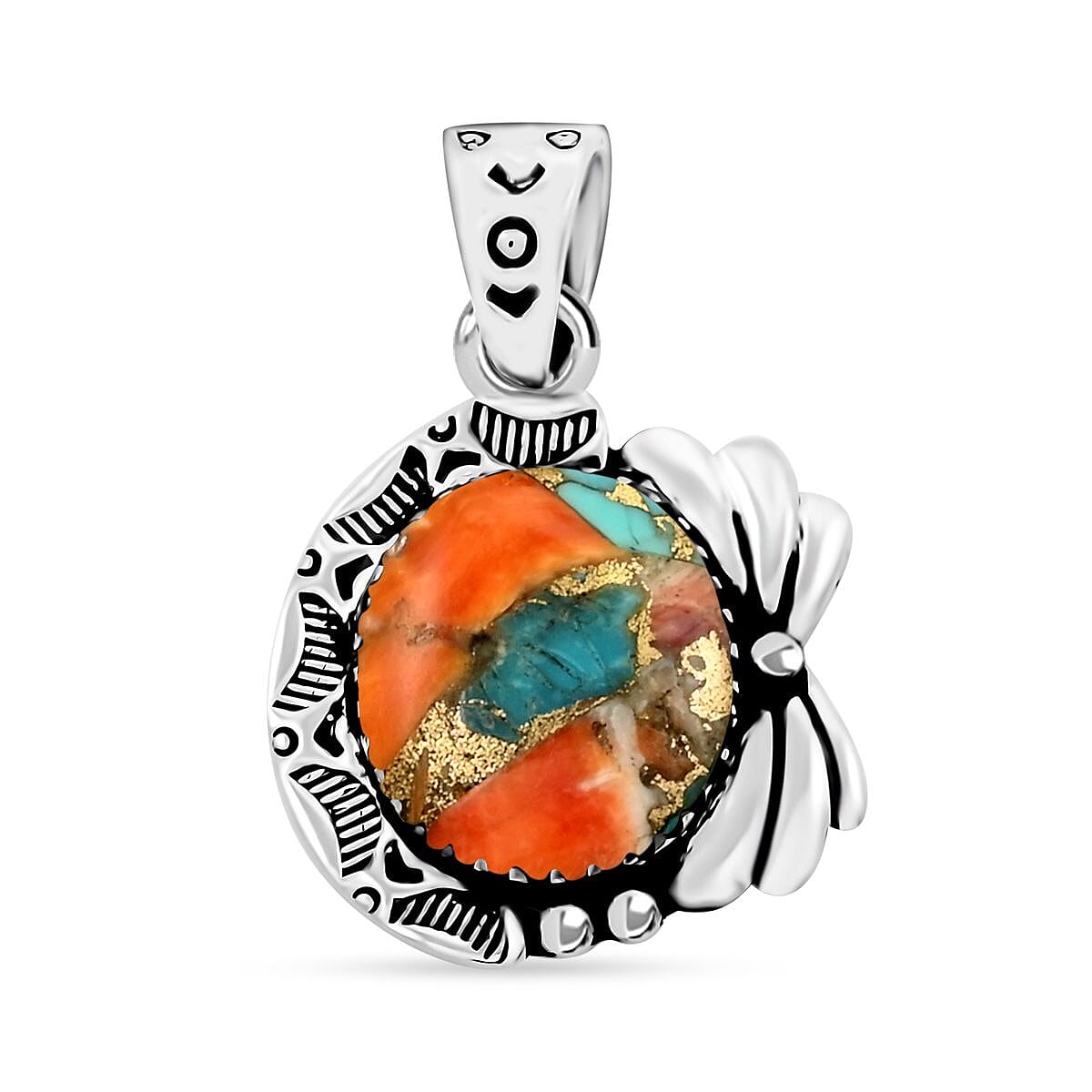 Santa Fe Style Spiny Turquoise Pendant in Sterling Silver 4.70 ctw