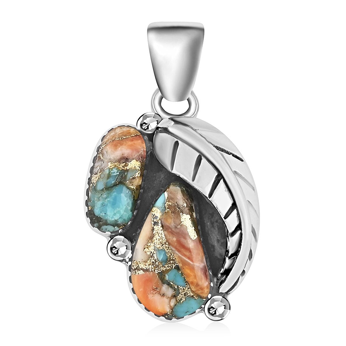 This Santa Fe style silver pendant, crafted in sterling silver, is inspired by the natural form of a leaf and features a vibrant gemstone centerpiece. This silver jewelry captures the essence of organic beauty, integrating it into a wearable piece of art.