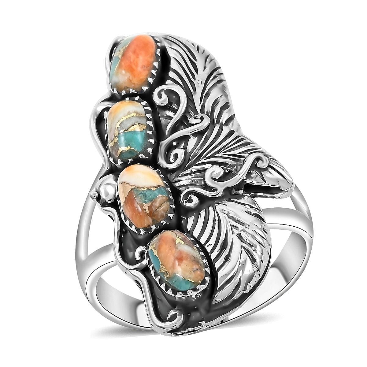 Santa Fe Style Spiny Turquoise Ring in Sterling Silver (Size 10.0) 1.60 ctw