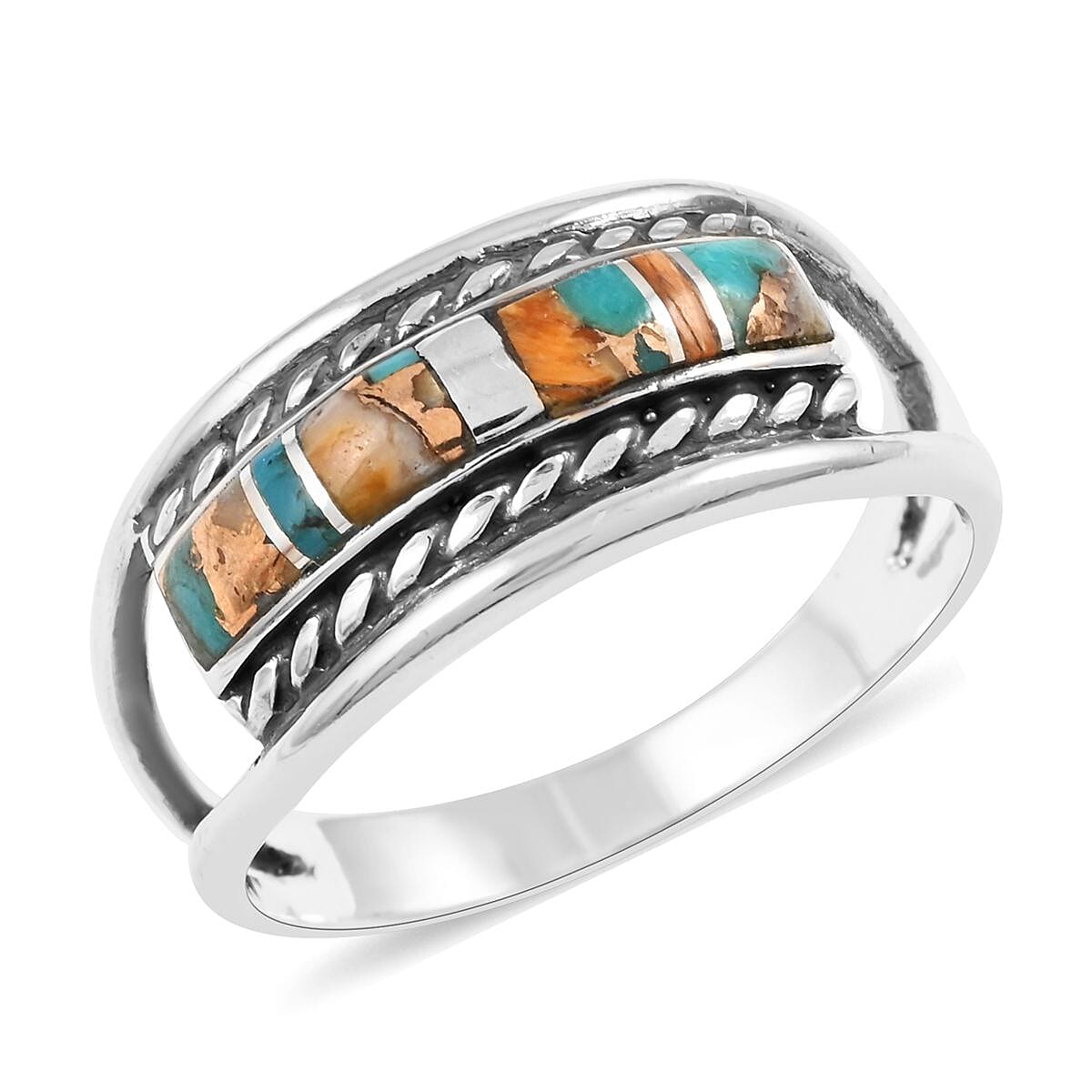 Santa Fe Style Spiny Turquoise Ring in Sterling Silver (Size 9.0) 2.75 ctw