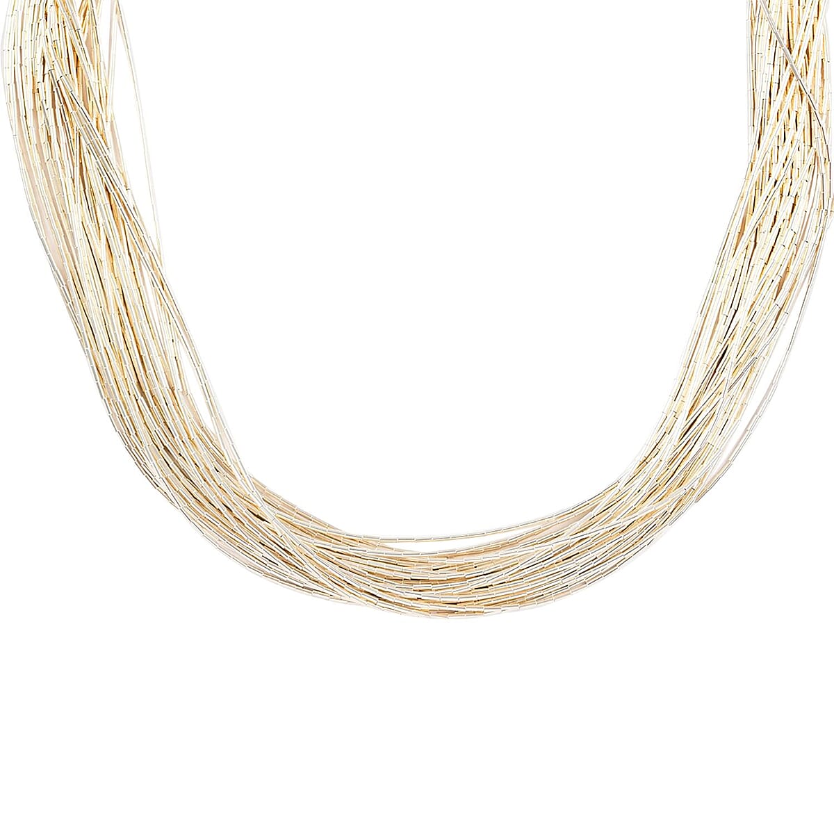 Multi strands of round-tube beads are clustered together for a divine waterfall look. Picture yourself dripping with "liquid silver." This radiant necklace of tiny silver beads is hand strung out of genuine sterling silver