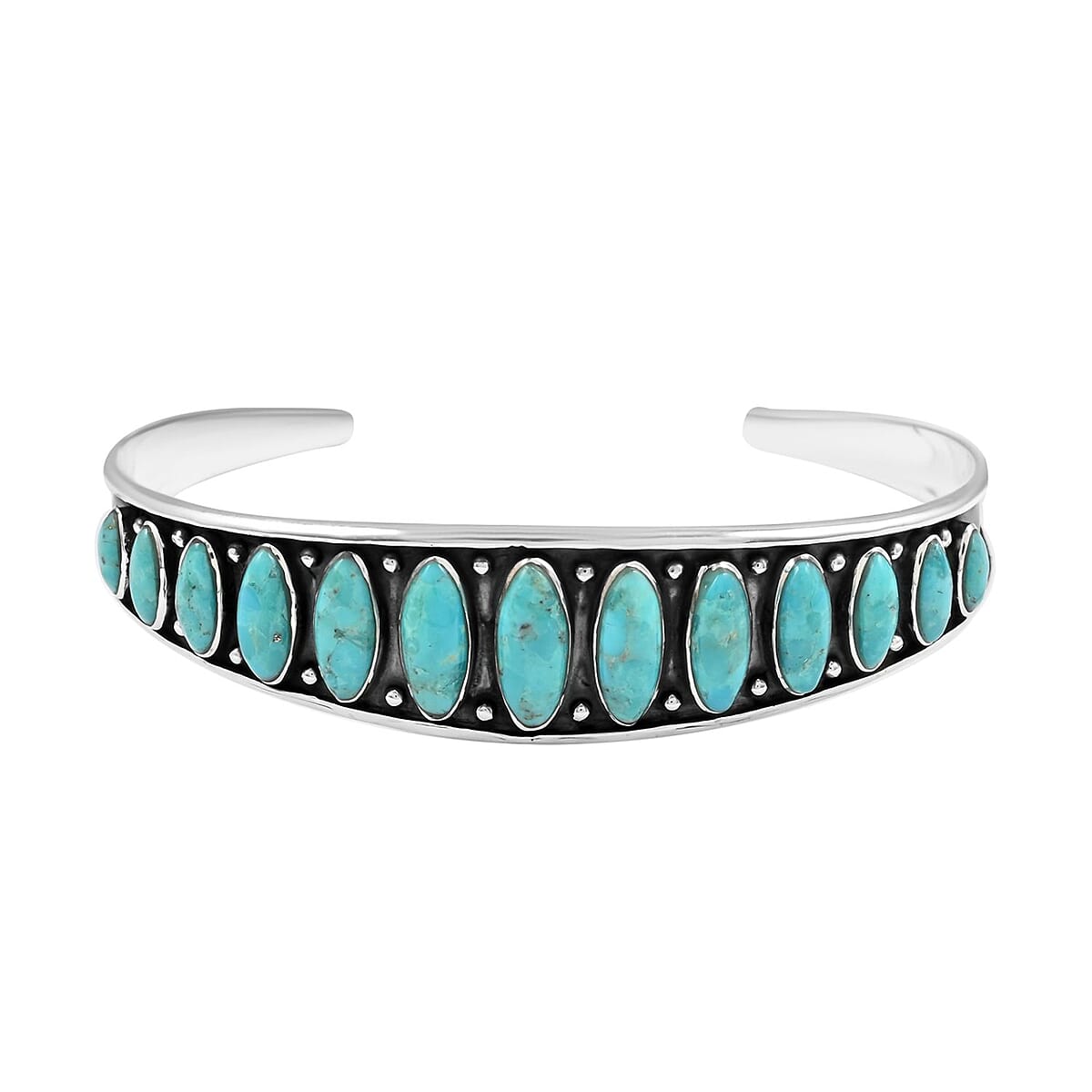 Santa Fe Style Turquoise Cuff Bracelet in Sterling Silver (Adjustable) 6.50 ctw