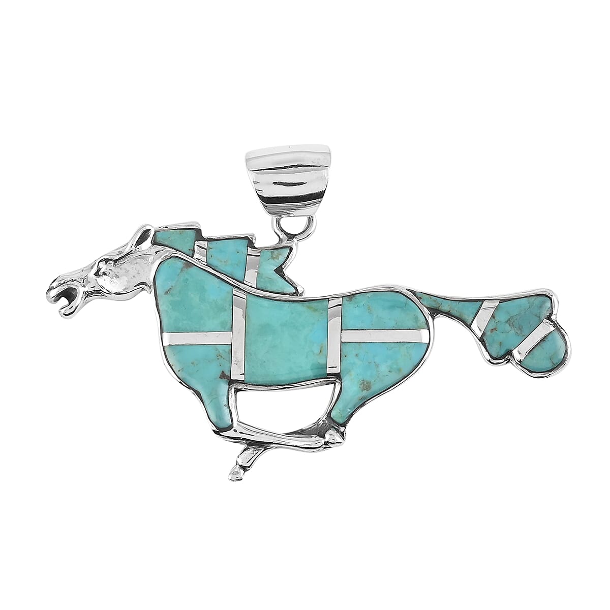 Santa Fe Style Turquoise Horse Pendant in Sterling Silver 2.25 ctw