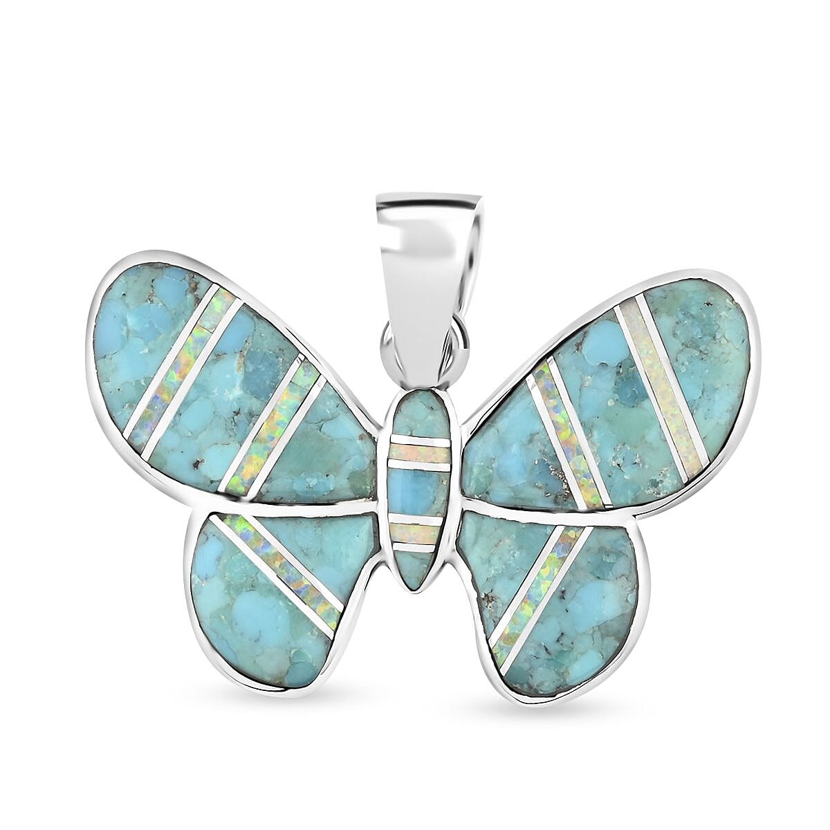 Santa Fe Style Turquoise, Opal Butterfly Pendant in Sterling Silver 11.00 ctw
