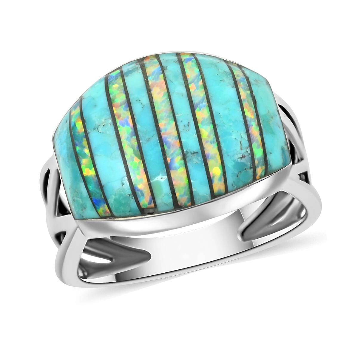 Santa Fe Style Turquoise, Opal Ring in Sterling Silver (Size 7.0) 5.00 ctw
