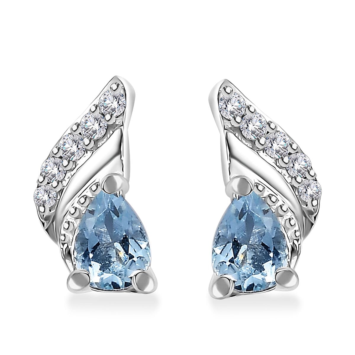 Santa Maria Aquamarine and White Zircon Leaf Earrings in Rhodium Over Sterling Silver 0.40 ctw