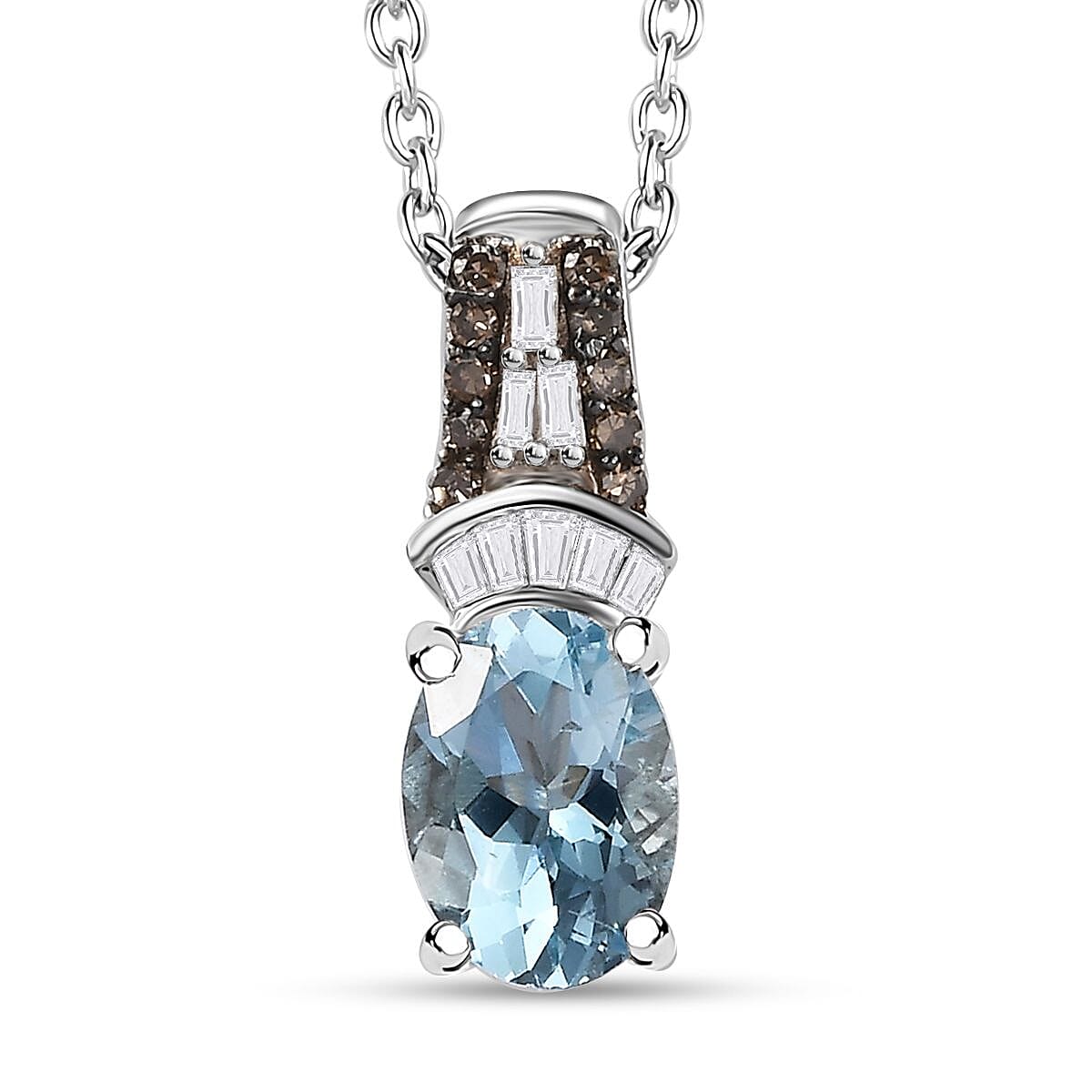 Santa Maria Aquamarine, Natural Champagne and White Diamond Pendant Necklace 20 Inches in Platinum Over Sterling Silver 0.80 ctw