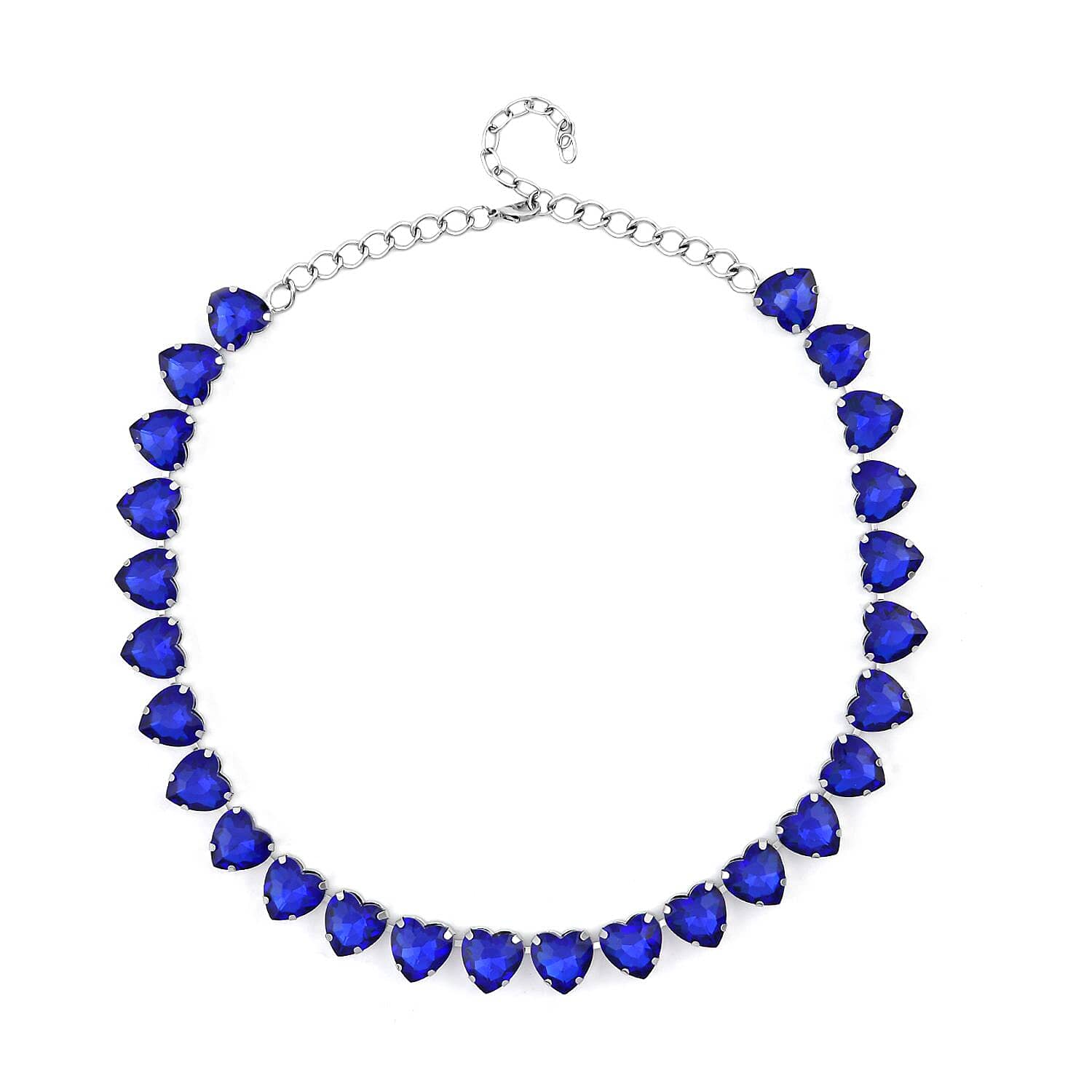 Sapphire Blue Color Glass Heart Necklace 20-22 Inches in Silvertone