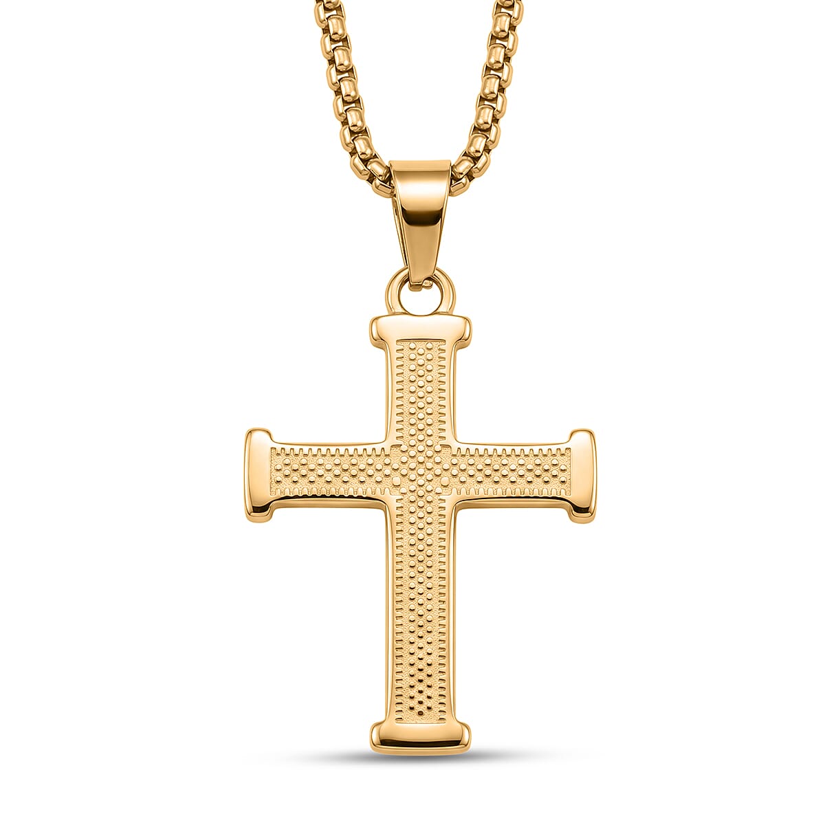 Scaled Cross Pendant Necklace in ION Plated YG Stainless Steel 22 Inches