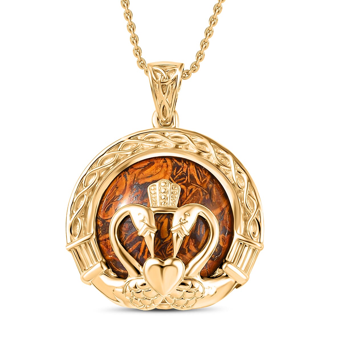 Script Stone 6.80 ctw Pendant in 18K YG Plated with ION Plated YG Stainless Steel Necklace 20 Inches