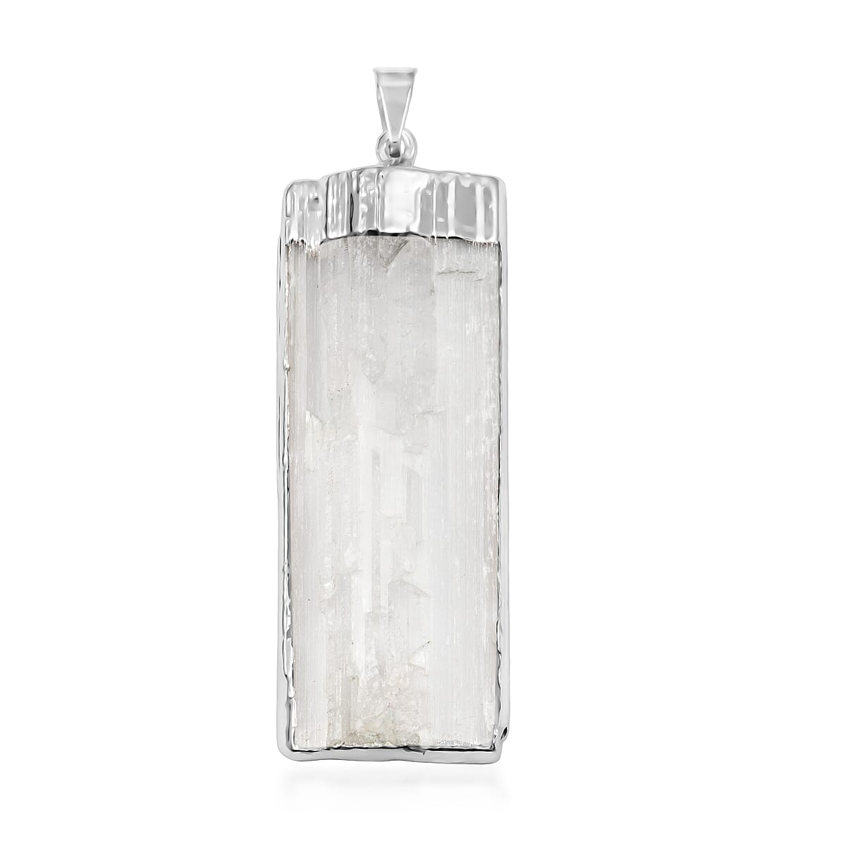 Selenite 40.00 ctw Pendant in Silvertone with Stainless Steel Necklace 20 Inches