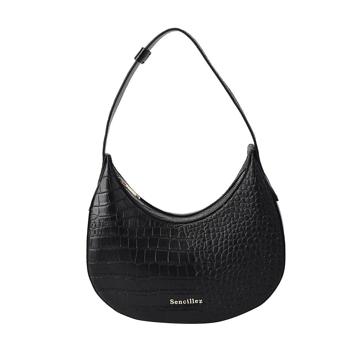 SENCILLEZ Black Genuine Leather Crocodile Embossed Structured Bag