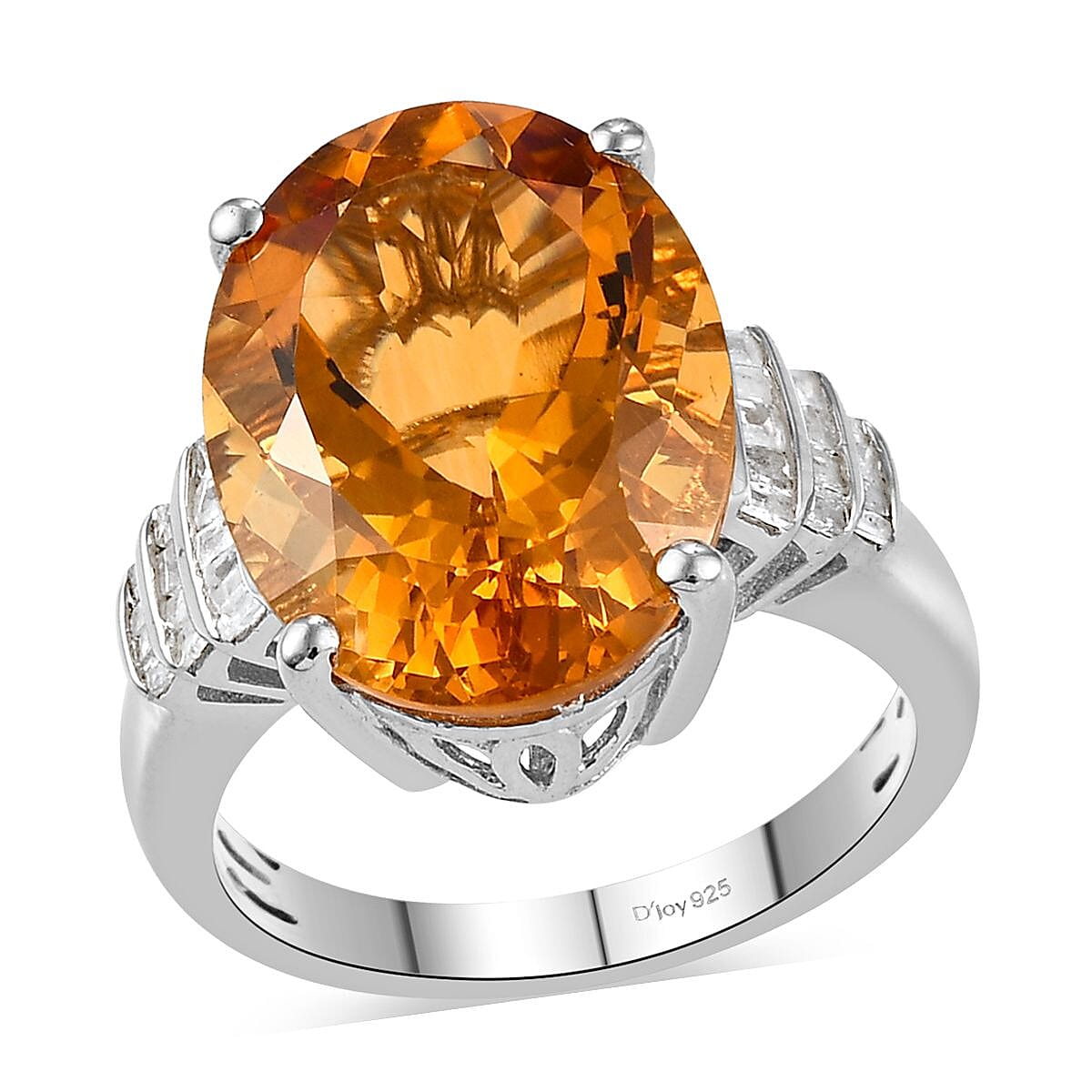 Serra Gaucha Citrine and Diamond Ring in Platinum Over Sterling Silver (Size 7.0) 8.75 ctw