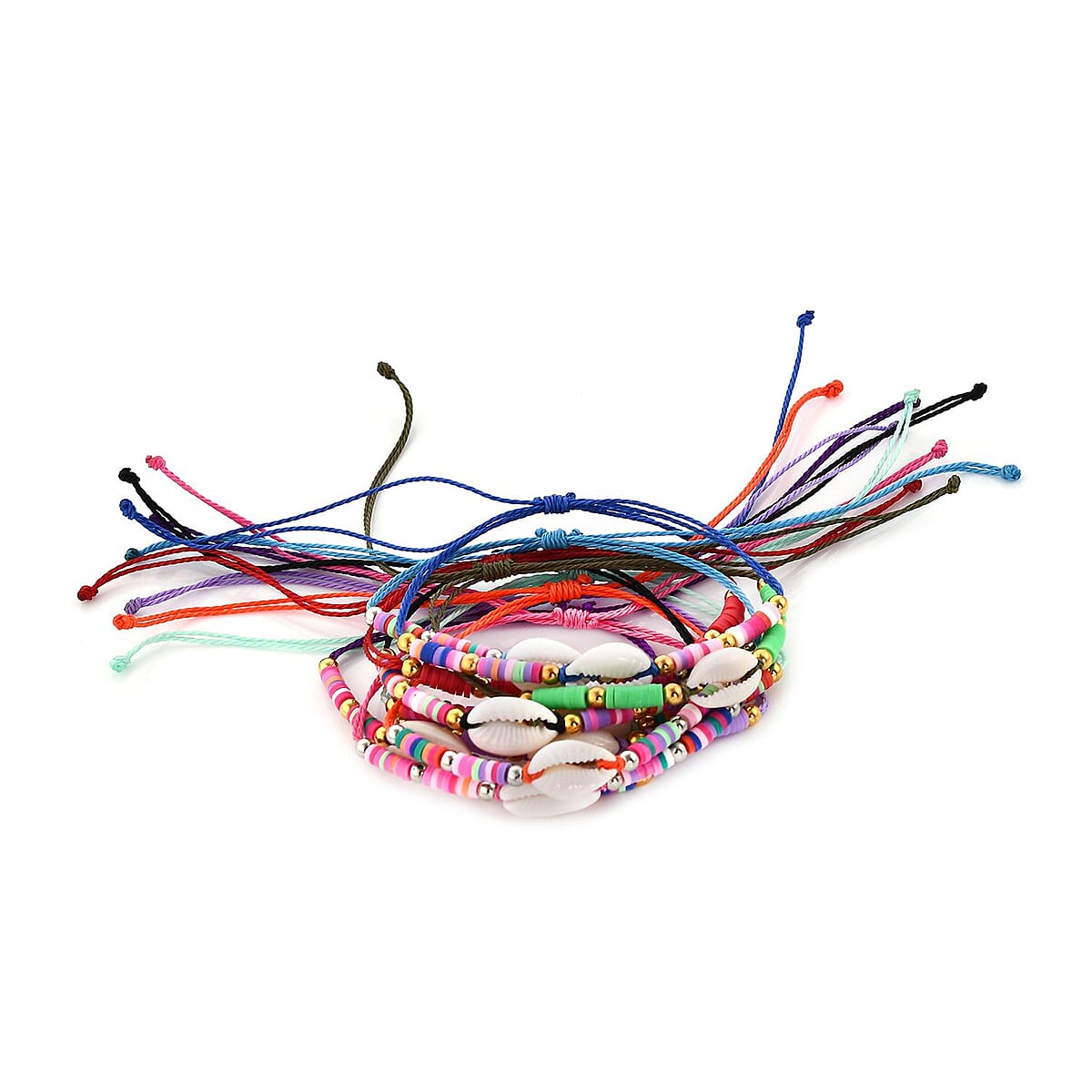 Set of 10 Cotton Shell Adjustable Bracelet