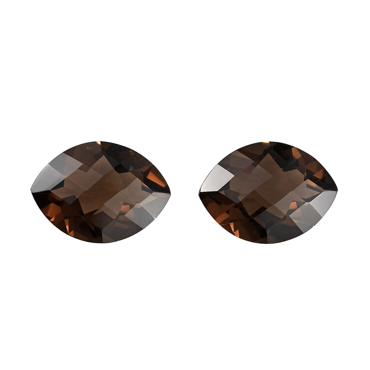 This set of 2 AA Brazilian smoky quartz gemstones is cherished for its earthy tones and named for its smoke-like appearance. Each marquise-shaped gemstone is precisely faceted for a sparkling look, making them rare and sought-after additions to any jewelry collection. These gemstones are approximately 16x12 mm each and weigh around 13.54 ctw, and these are ideal for rings, pendants, and earrings.