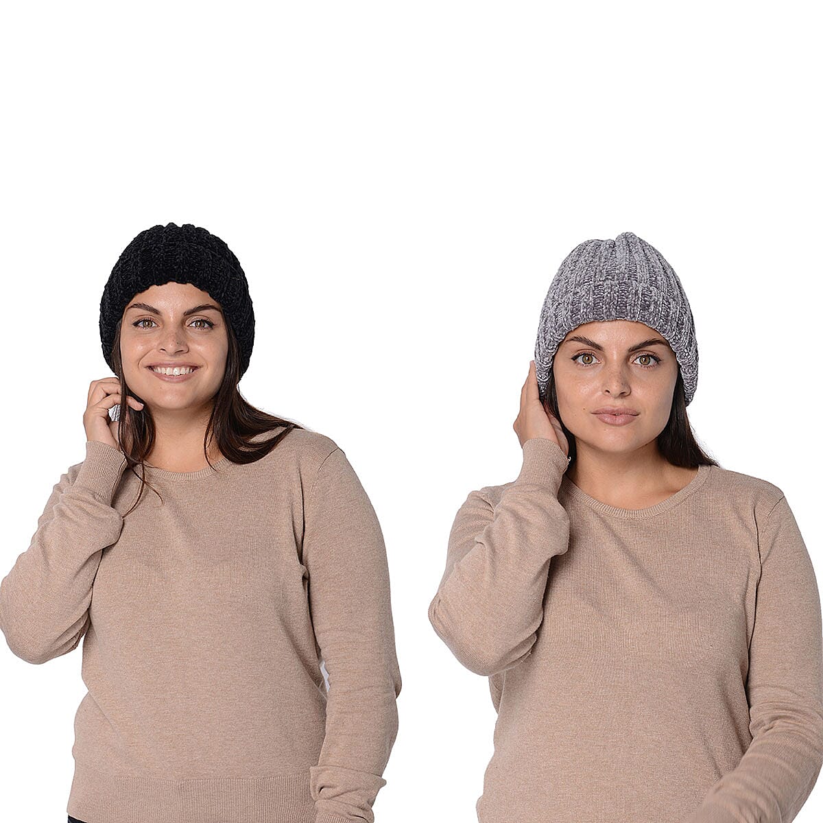 Set of 2 Black and Gray Beanies (13x9, Polyester & Acrylic)