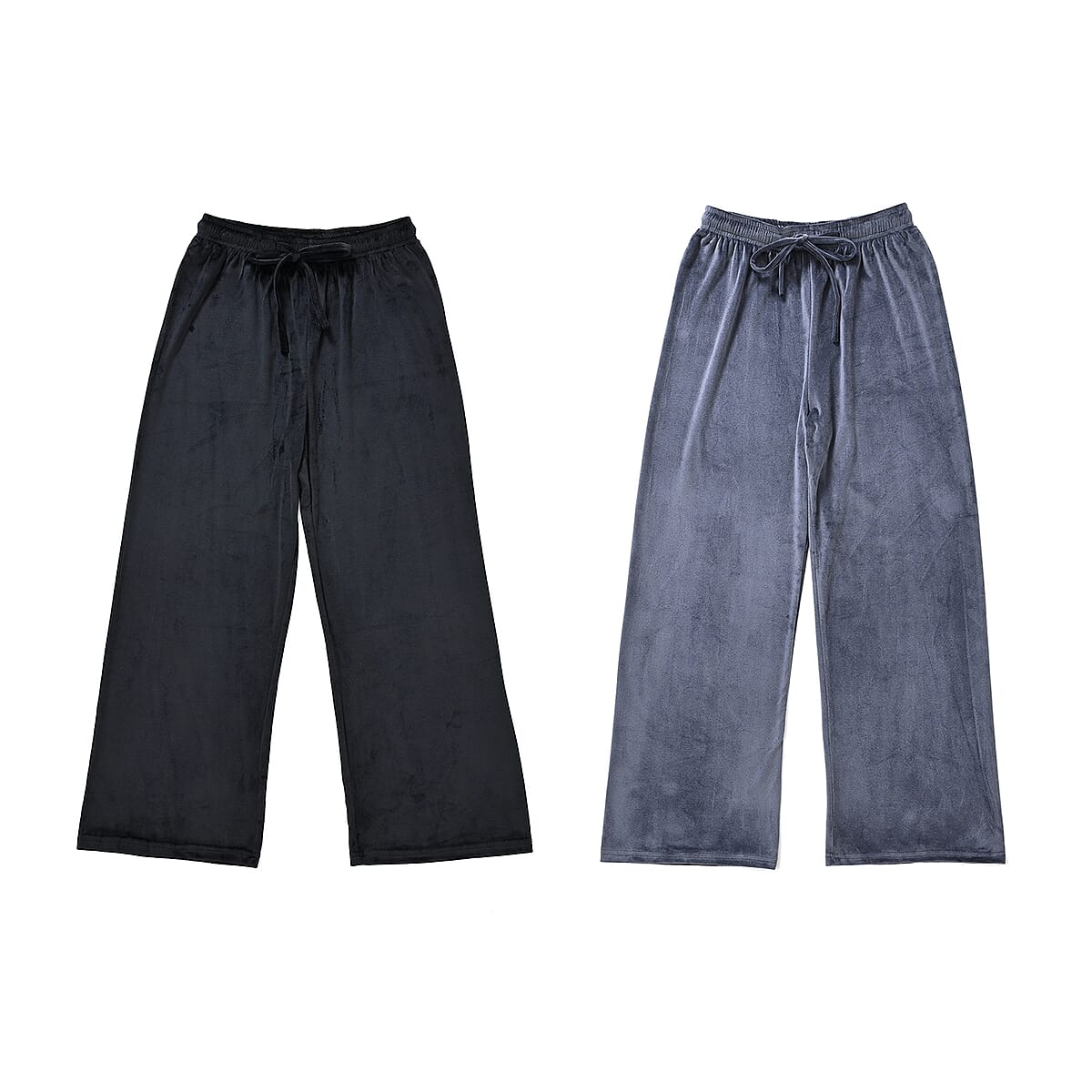 Set of 2 Black and Gray Velvet Elastic Waist Lounge Pant - One Size Fits up to S-L