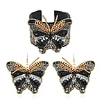 Set of 2 Black Seed Beaded Butterfly Cuff Bracelet and Earrings in Goldtone