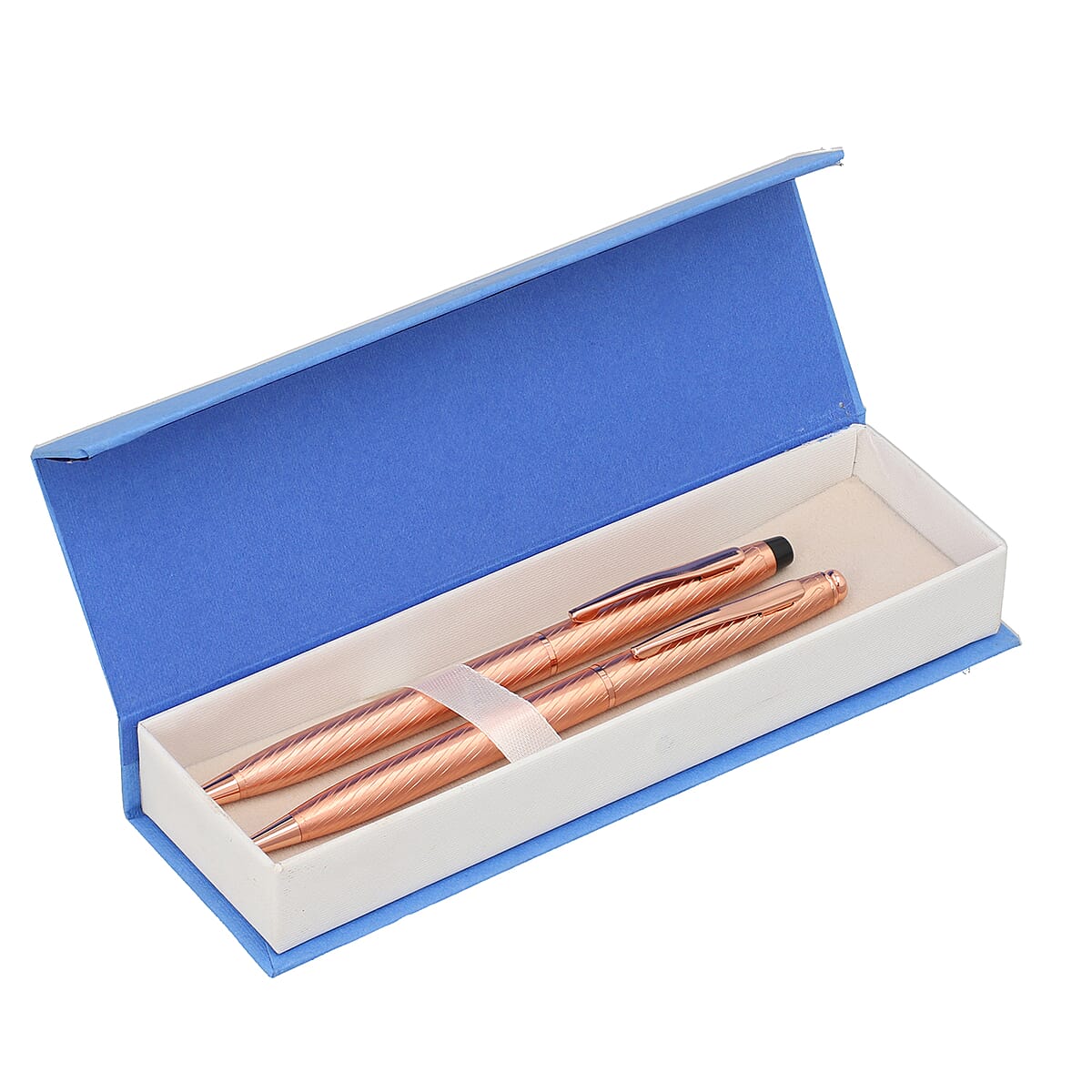 Set of 2 Copper Ball Point Pens Studded with Crystal in Gift Box -Bronze