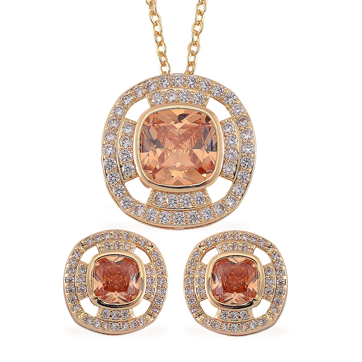 Set of 2 Karis Simulated Champagne Diamond and White Crystal 3.00 ctw Necklace 20-22 Inches, Earrings in Rosetone