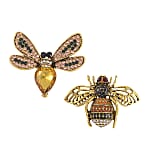 Set of 2 Multi Color Austrian Crystal Bee & Fly Brooch in Goldtone