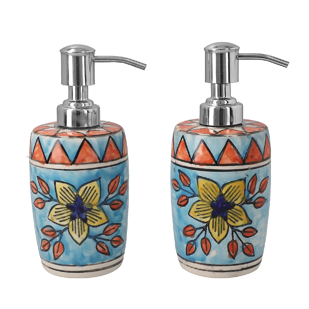 Set Of 2 Multi Color Hand Painted Floral Ceramic Soap Dispenser