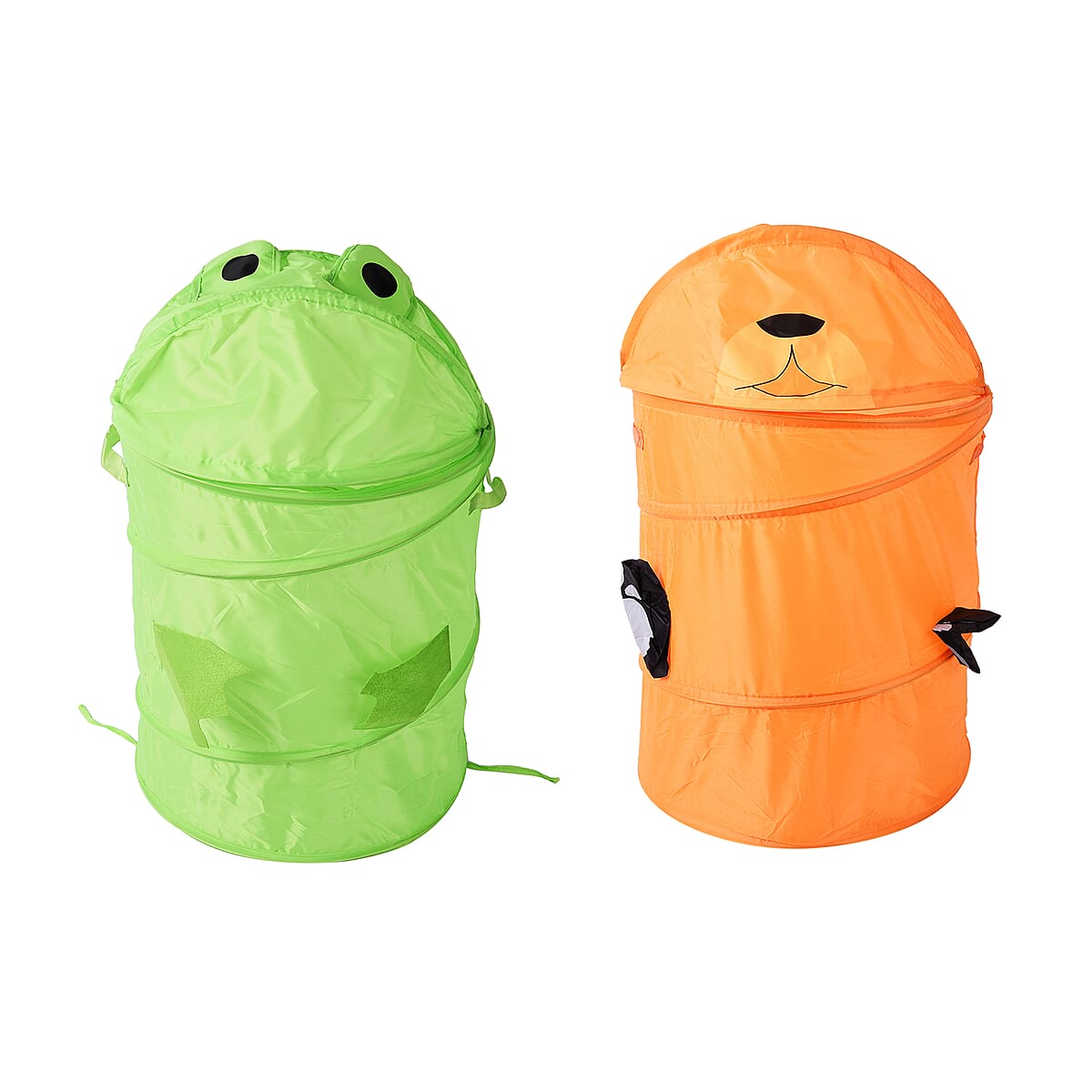 Set of 2 Orange & Green Polyester Cute Cartoon Animal Folding Basket