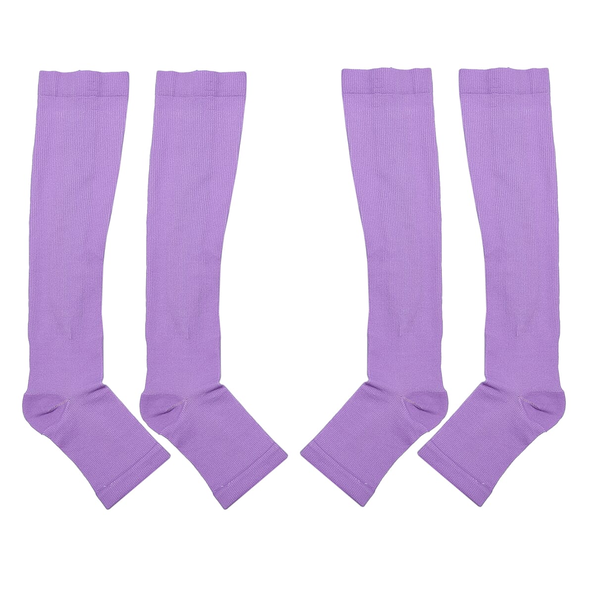 Set of 2 Pairs Purple Zipper Compression Socks with Open Toe (S/M)-15-20mmHg