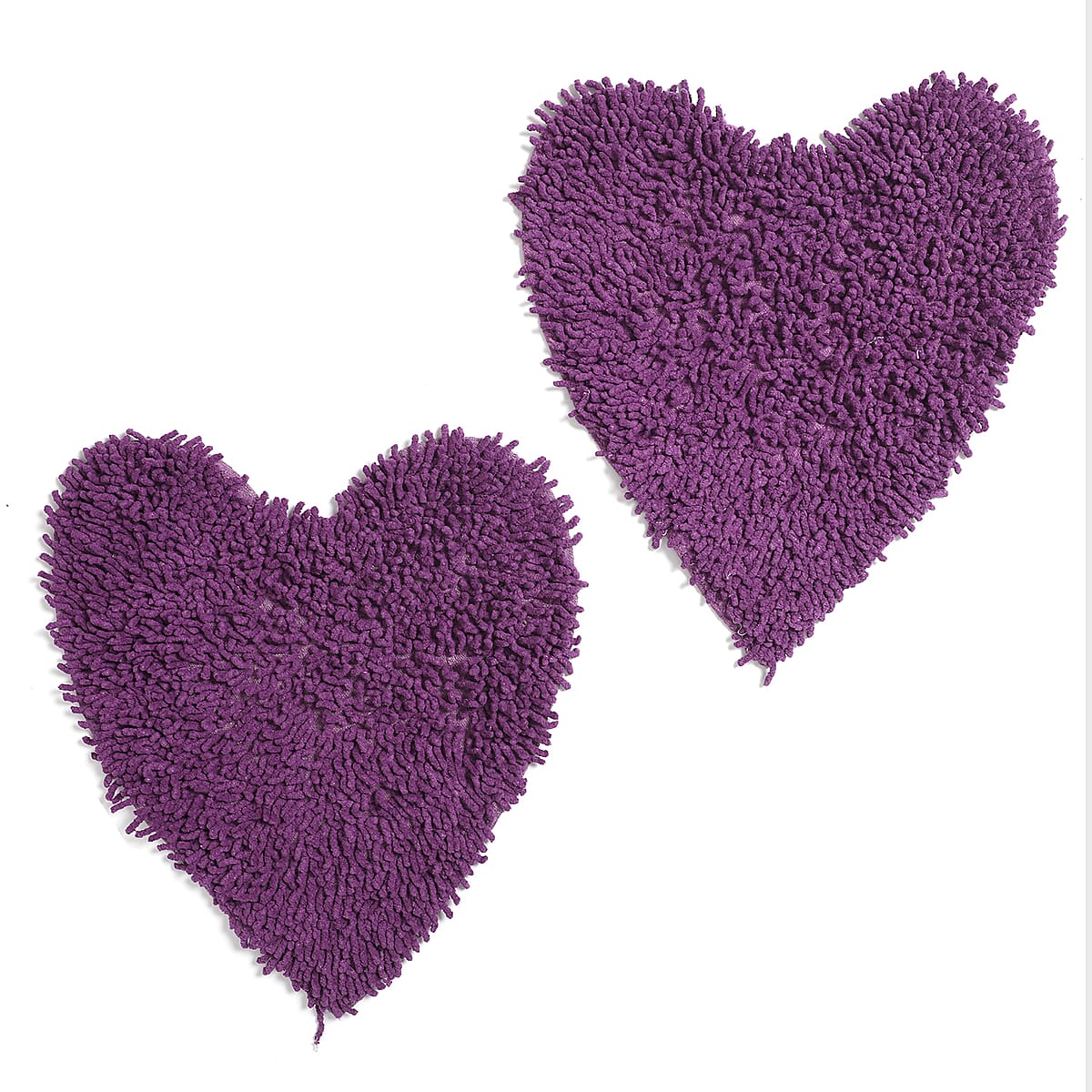 Set of 2 Purple Chenille Shaggy Heart Cotton Bath Mat with Latex Anti Skid Back