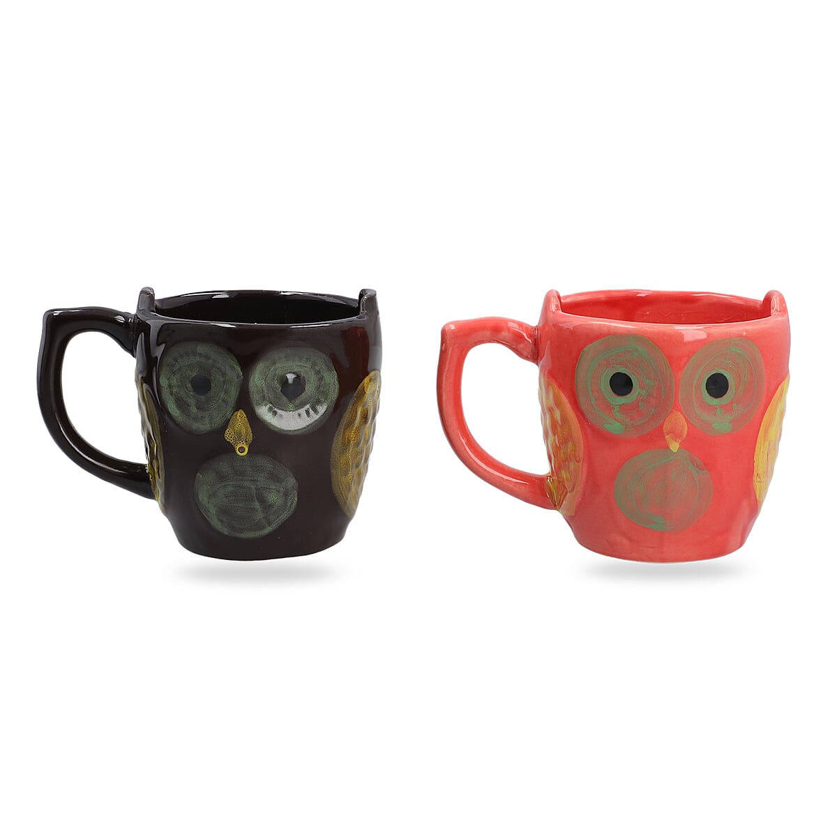 Set of 2 Red and Black Ceramic Owl Coffee Mug