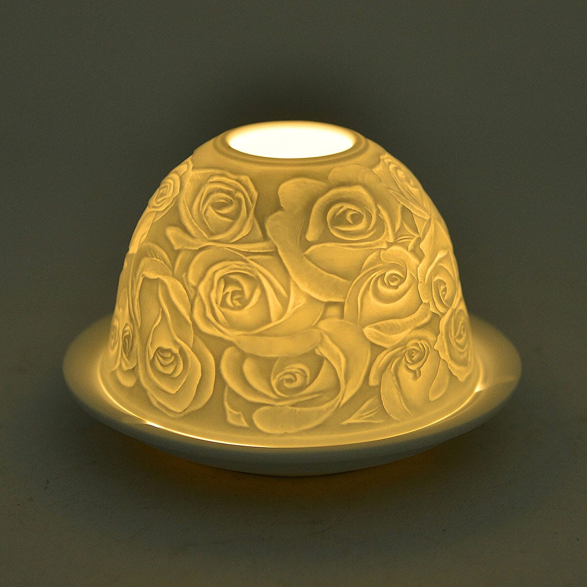 Set of 2 Rose Engraved Ceramic Candle Holders with LED Light (5x3 in)
