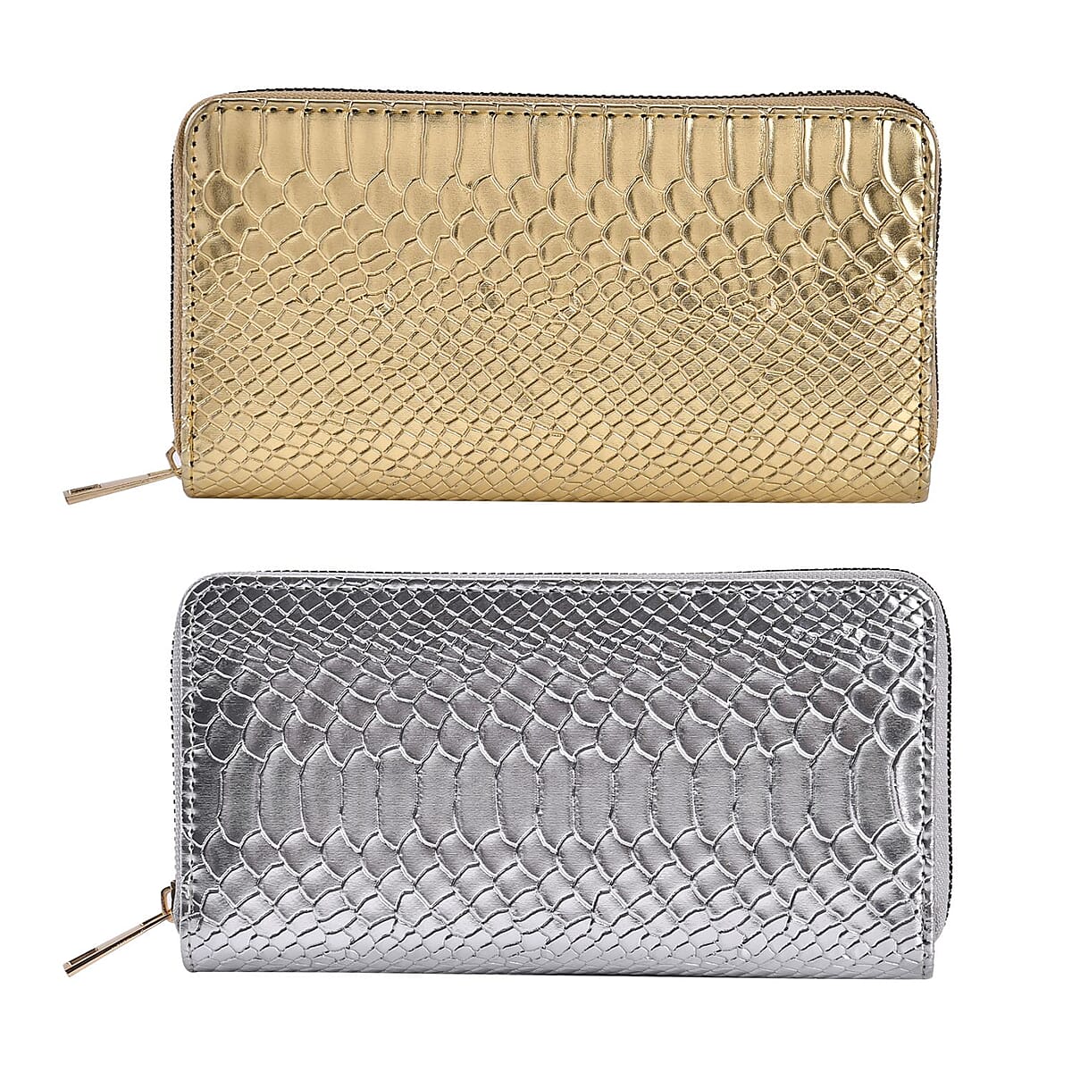 Set of 2 Silver and Gold Snake Embossed Pattern Faux Leather Wallet