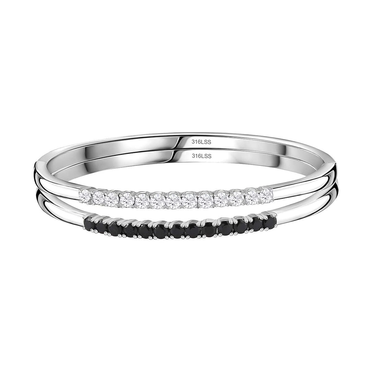Set of 2 Thai Black Spinel and White Zircon Bangle Bracelet in Stainless Steel (7.25 In) 3.85 ctw