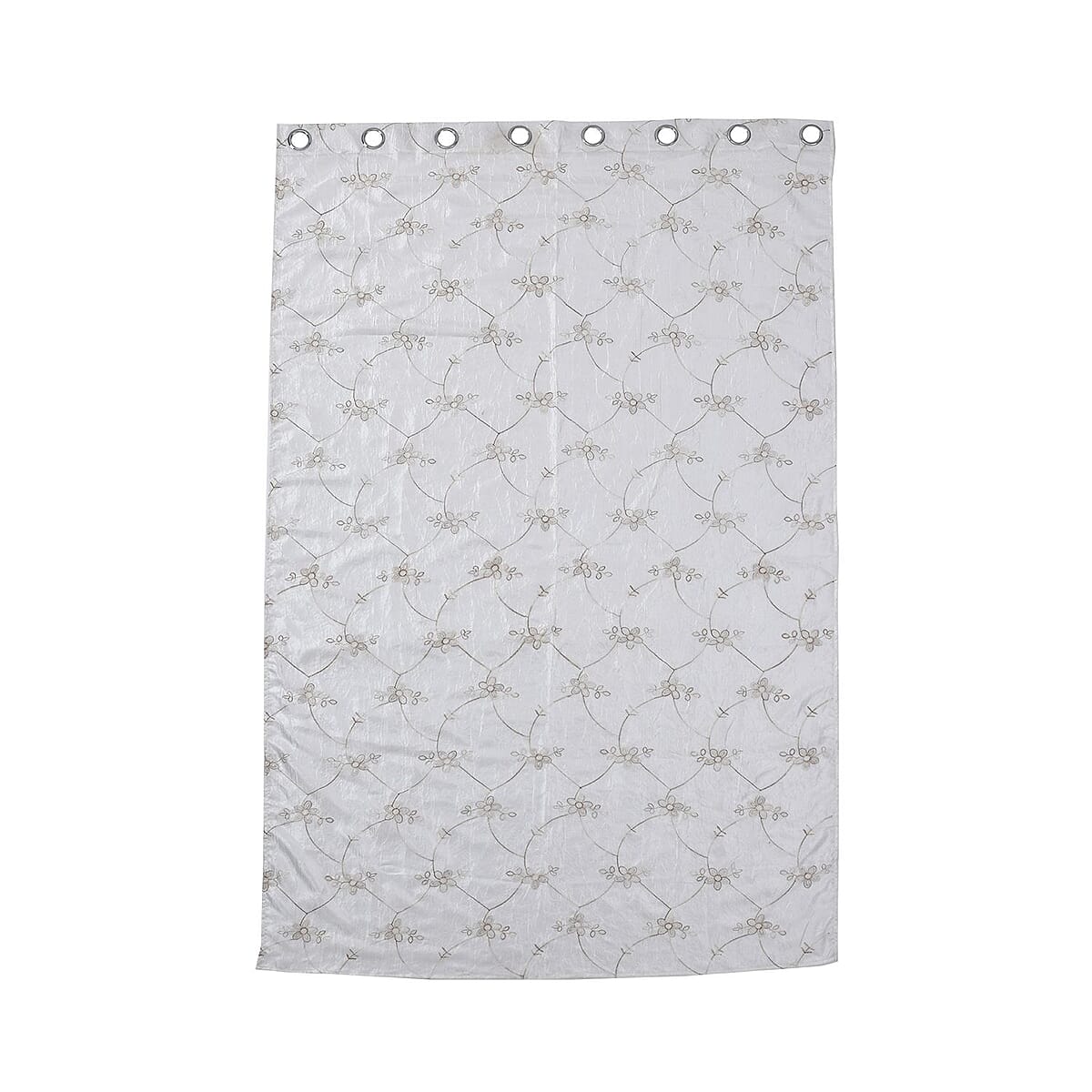 Set of 2 White Embroidered Polyester Curtains with 8 Metal Grommets, Handwash Grommets Curtains Set For Door and Windows