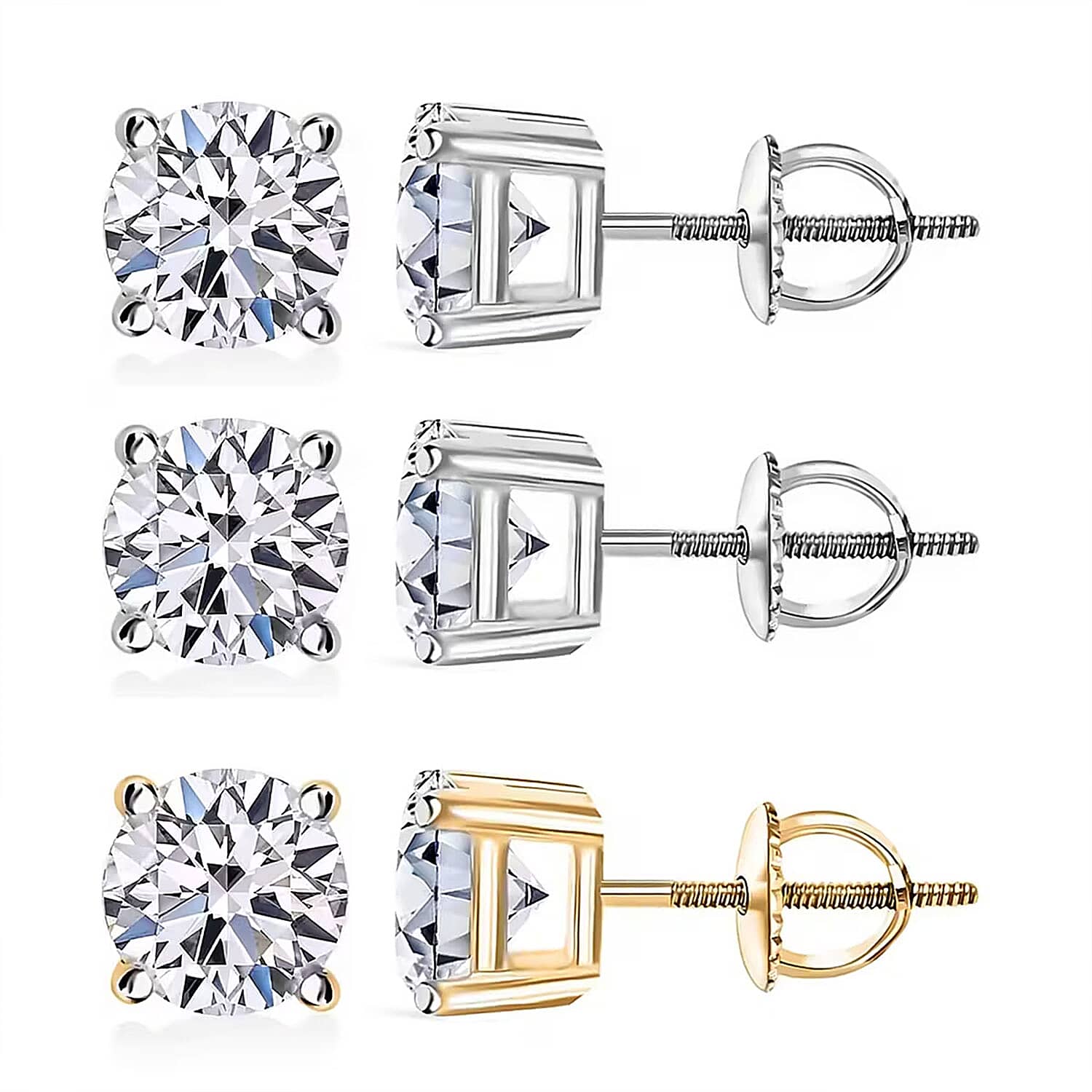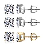 Set of 3, 14K White and Yellow Gold Luxuriant Lab Grown Diamond (G, SI1) Solitaire Stud Earrings 3.00 ctw (Del. In 10-12 Days)