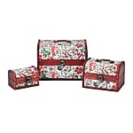 Set of 3 Brown Wooden and Multi Color Floral Pattern Faux Leather Nesting Treasure Chest with Anti Tarnish, Latch Lock and Handle