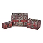Set of 3 Brown Wooden and Multi Color Paisley Pattern Faux Leather Nesting Treasure Chest with Anti Tarnish, Latch Lock and Handle