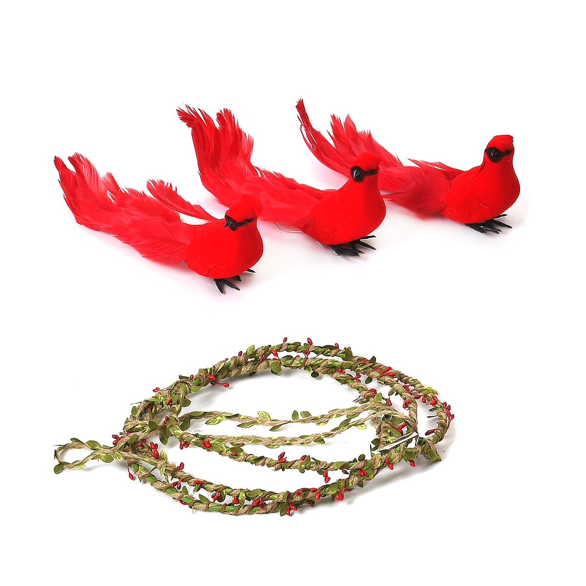 Set of 3 Hanging Cardinal Bird Perching on The Round Flower Ring