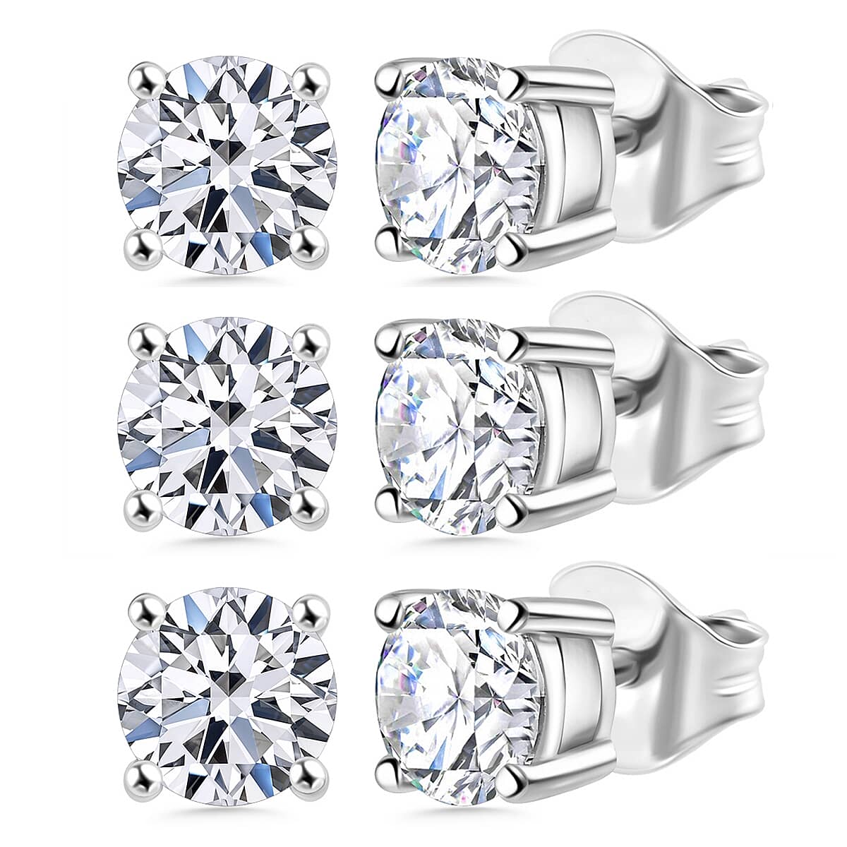 Set of 3 Luxuriant Lab Grown Diamond G-H SI 1.50 ctw Solitaire Stud Earrings in Platinum Over Sterling Silver