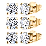 Set of 3 Luxuriant Lab Grown Diamond G-H SI 1.50 ctw Solitaire Stud Earrings in Vermeil Yellow Gold Over Sterling Silver