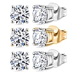 Set of 3 Luxuriant Lab Grown Diamond (G-H, SI) Solitaire Stud Earrings in Vermeil YG and Platinum Over Sterling Silver 1.50 ctw (Del. In 10-12 Days)