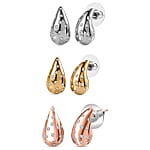 Set of 3 Moissanite Raindrop Tear Drop Statement Earrings in Vermeil Yellow, Rose Gold and Platinum Over Sterling Silver 2.90 ctw