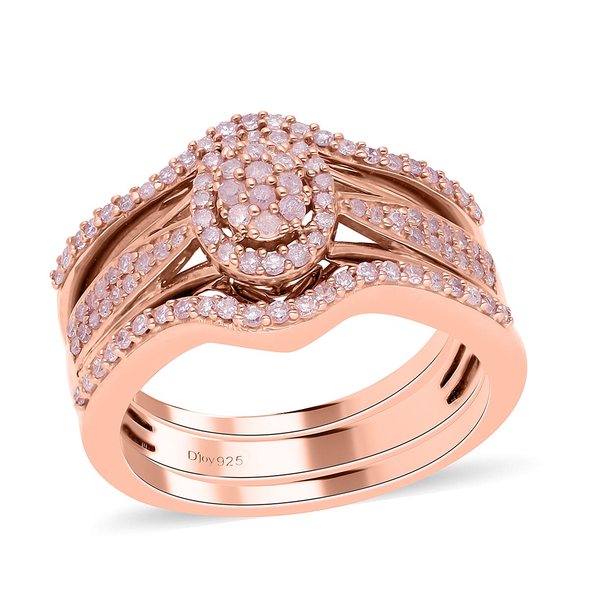 Experience the blush of eternal beauty with our natural pink diamond stackable rings. This enchanting trio, featuring round-shaped pink diamonds in a cluster design and set in vermeil rose gold over sterling silver, is the epitome of grace, sophistication, and timeless elegance. More than just a piece of jewelry, it's a celebration of femininity, romance, and the enchanting beauty of nature. Make these versatile pieces yours today.